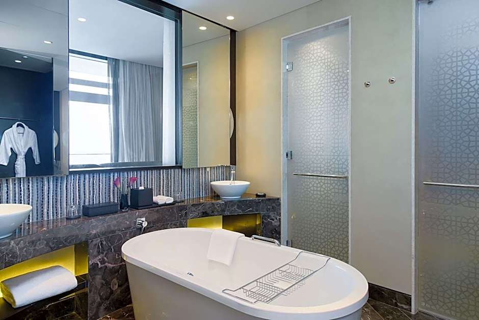 The spacious suite offers air conditioning, a mini-bar, as well as a private bathroom featuring a bath or a shower and a bidet. The suite features a tea and coffee maker, a seating area, a wardrobe, a safe deposit box, as well as a flat-screen TV with cable channels. The unit offers 1 bed.